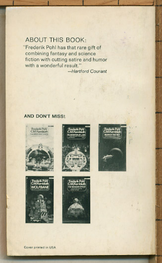 This second printing has a great cover by Dean Ellis - part of a matching set from this period. In my opinion, this is the best looking edition for this book. Ballantine Books (#01663) 2nd printing July 1969 paperback. Cover by Dean Ellis, 154 pages, 75 cent cover price. Condition is VG+: tight and almost square with flat spine; age tanning is mild and uniform (average to decent for its age, and no darkening inside covers.) Light overall wear - mainly as a checkmark in pen below title (almost lost in the art), and rubbing/wear to back cover (see scans.) A few numbers/letters written at top right of first inside page - no stamps, marks or other writing. | |||