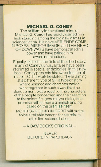 Coney, Michael G. MONITOR FOUND IN ORBIT book-date: 1974 | |