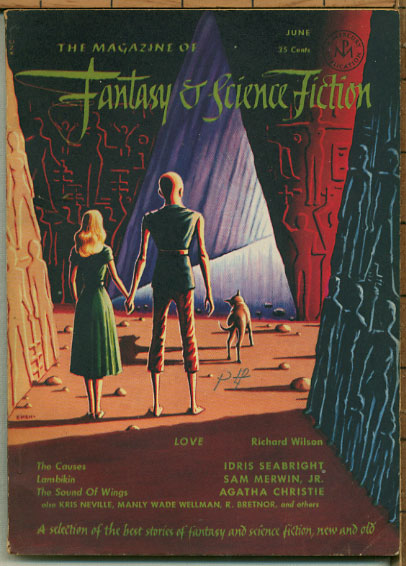 The Magazine of Fantasy and Science Fiction: June 1952 (Volume 3, Number 3) Stories: "Love" by Richard Wilson Anthony Boucher & J. Francis McComas are Editors. Book Reviews by "the editors." Contains Index to Volume 2. The first 4 issues of F&SF were quarterly, then it was bimonthly until August 1952, then monthly… for decades. |